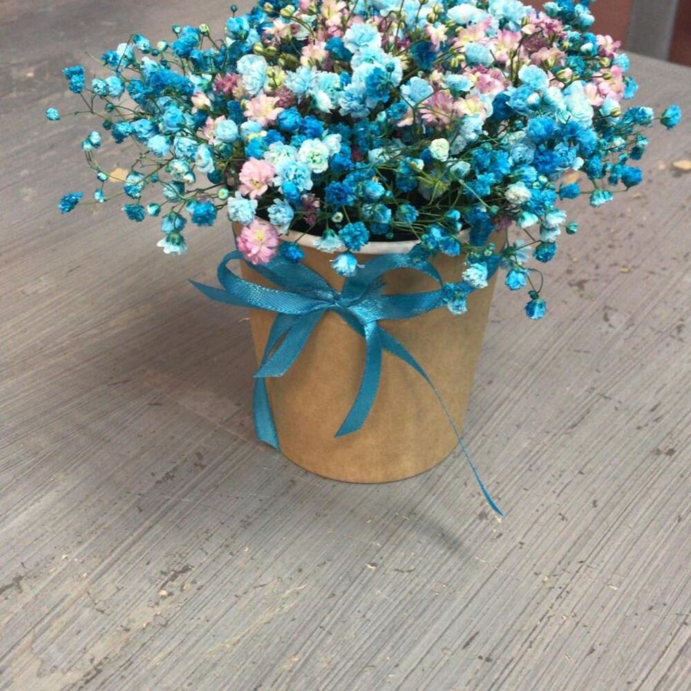 Лента атласная – 1 шт.Оазис флористический – 1 шт.стакан кофейный – 1 шт.гипсофила радужная – 2 шт.