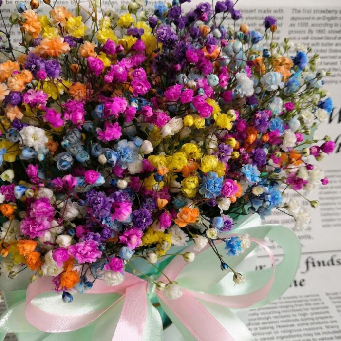 Радужная гипсофила в деревянном ящичке