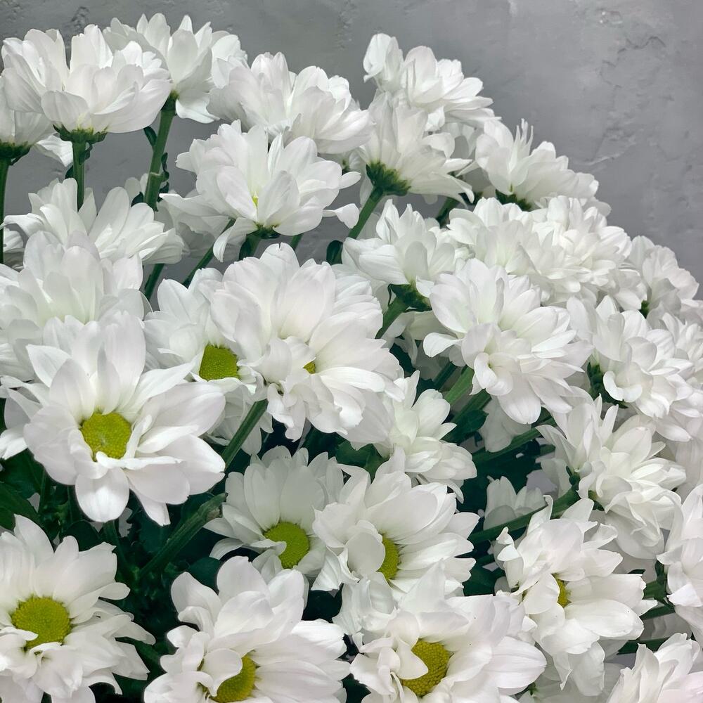 Кустовая хризантема это разновидность одноцветковой хризантемы похожей на ромашку. Белоснежная хризантема имеет прочный зеленый стебель, что позволяет использовать ее в компоновке различных цветочных композиций. После срезки этой хризантемы она длительное время сохраняет свою свежесть и стойкость.Это очень изящный, практичный, стойкий цветок, который завоевал необычную популярность на рынке свежесрезанных цветов. Она составляет основу для изготовления легких и романтических букетов. Жемчужно-белые цветы с сердцевиной салатового цвета могут великолепно смотреться как в моно букете, так и в букете с другими цветами.
