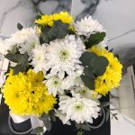 Хризантема кустовая – 7 шт.Эвкалипт Микс – 1 шт.Оазис флористический – 1 шт.Сумочка – 1 шт.