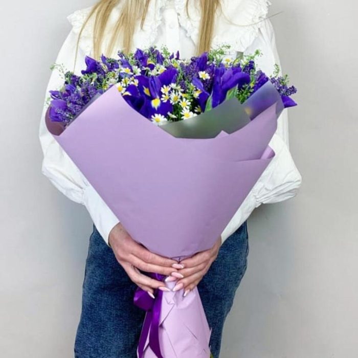 Вероника – 6 шт.Зелень – 3 шт.Матрикария – 6 шт.ирисы – 15 шт.