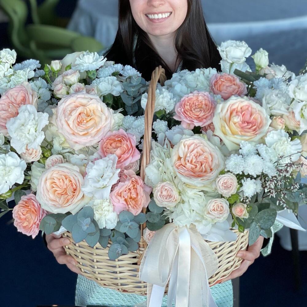 Корзина с белой гортензией