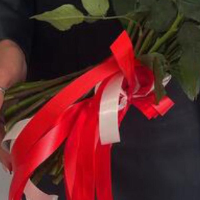 ленты атласные – 2 шт.красная роза рен наоми – 39 шт.