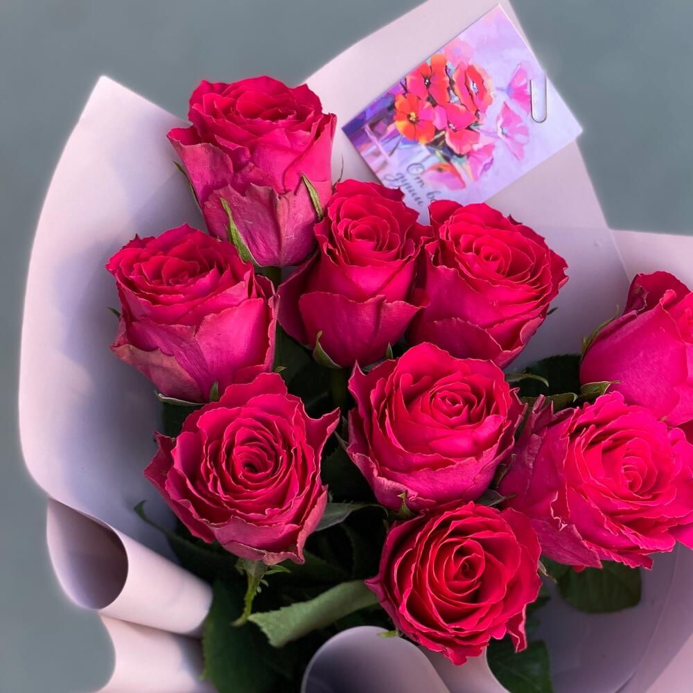 Роза – 9 шт.Упаковка – 1 шт.Лента – 2 шт.Открытка мини – 1 шт.