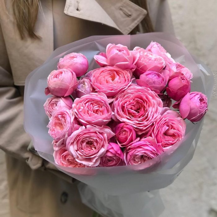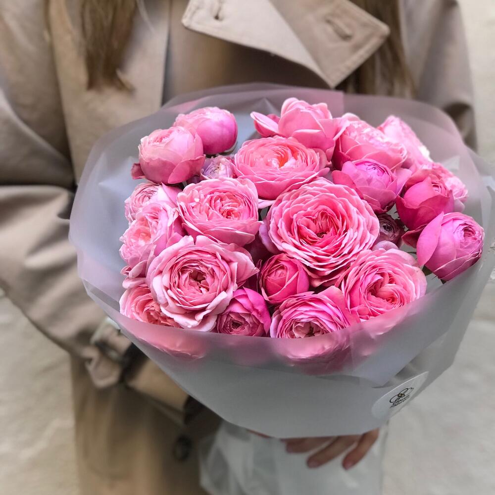 Большой букет из пионовидных кустовых роз